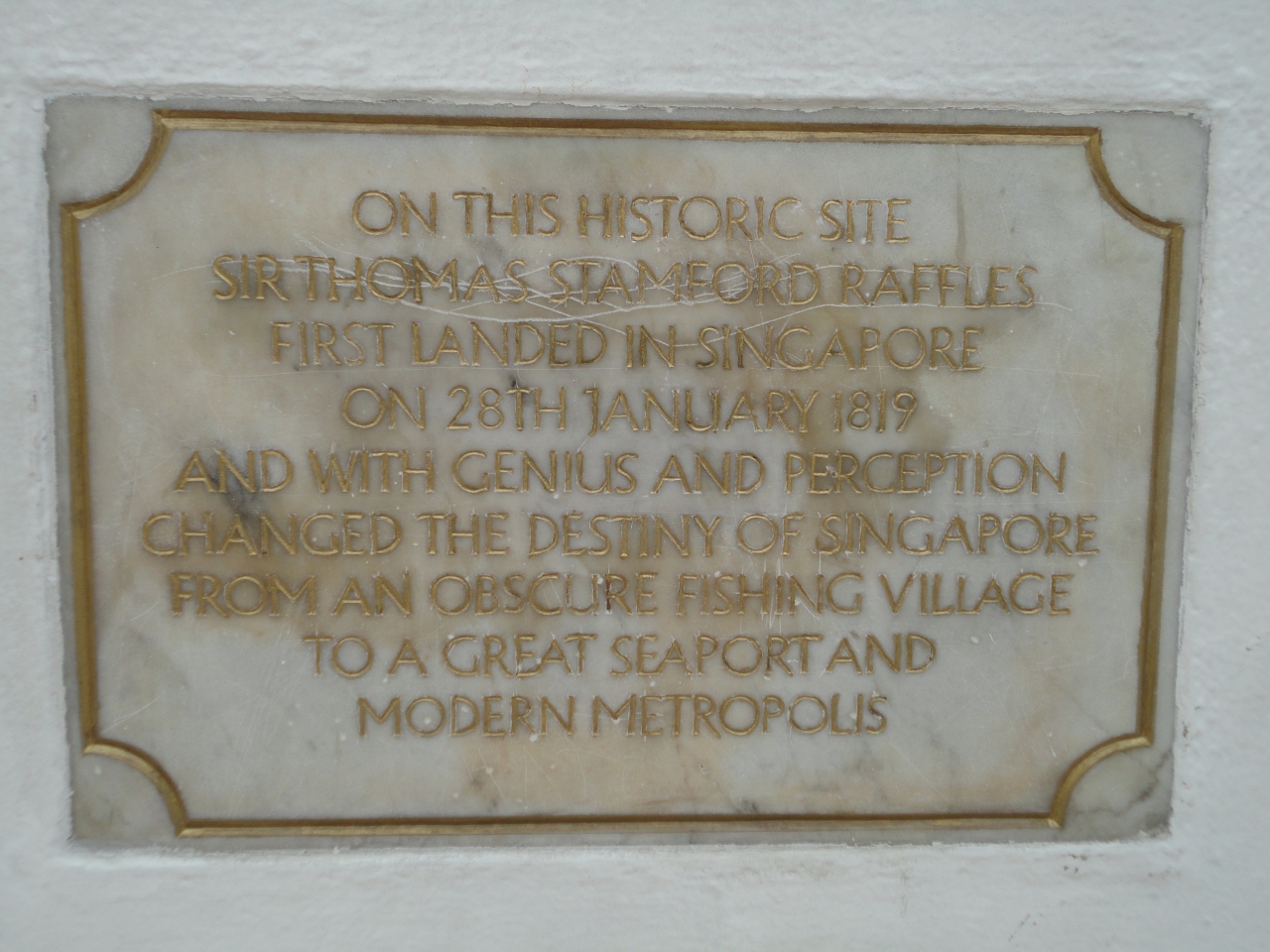 ラッフルズ卿の像が立つ