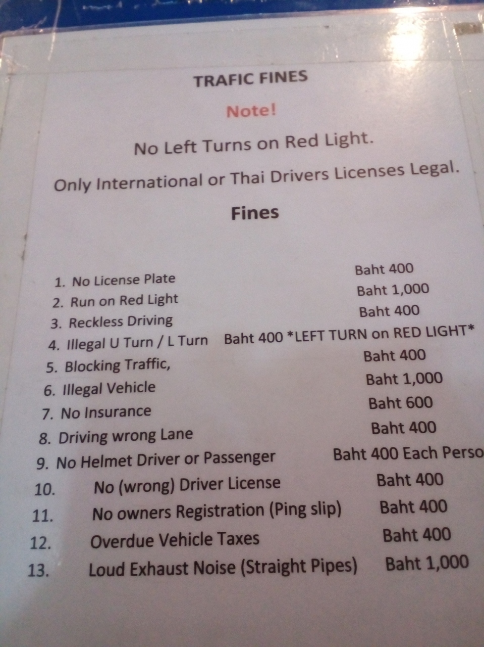 旅行記にも記載しましたがタイで無免許の切符を切られた無い為に口コミにも記載します。