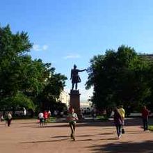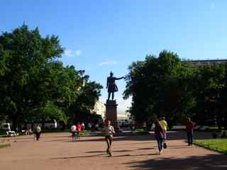 広場の中央にはロシアを代表する詩人のプーシキンの像があり、詩人らしくちょっと気取った感じのポーズで立っていました。