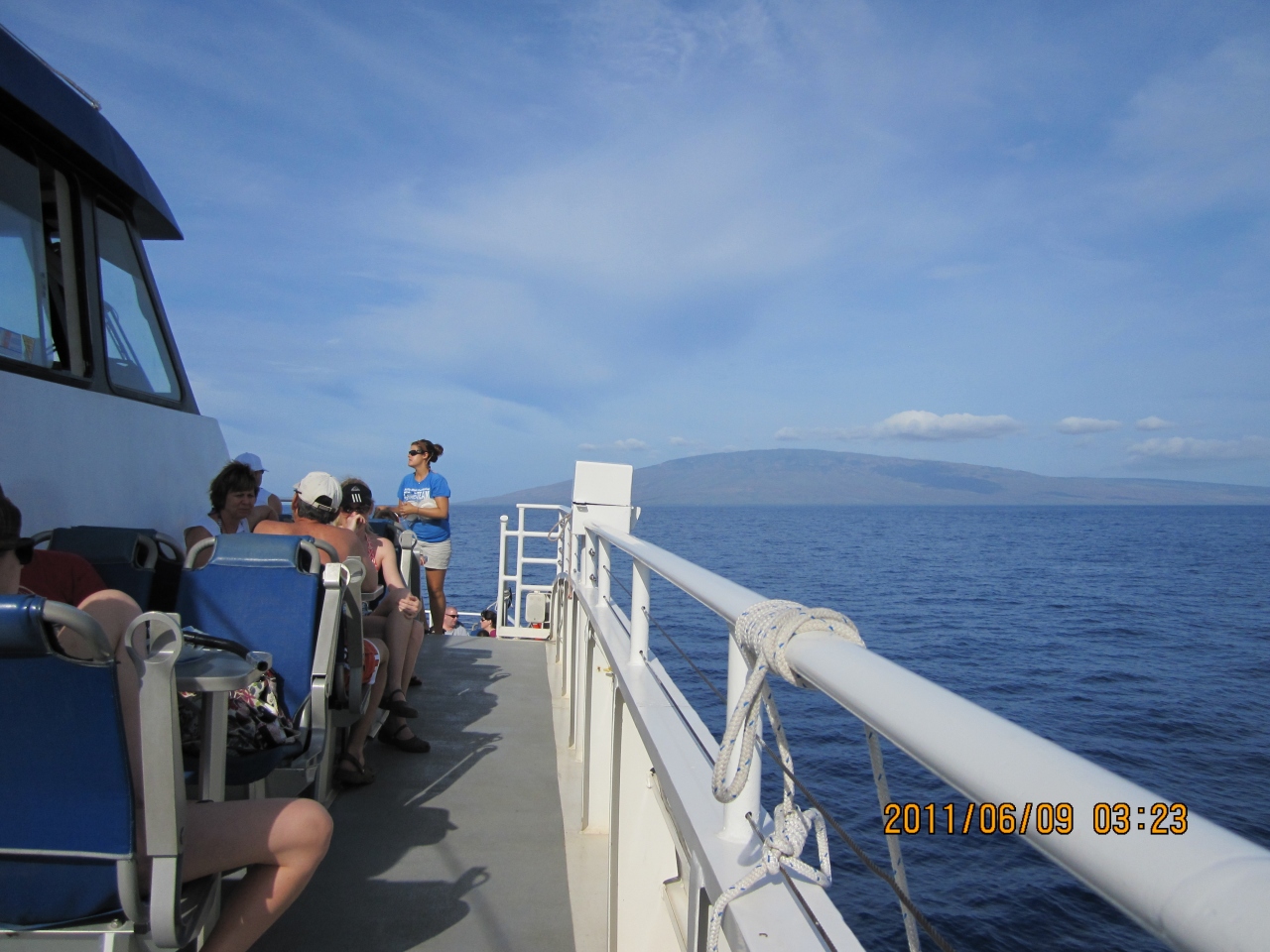 6月と9月に行きましたけど、毎回イルカには会えましたよ。ラハイナ港をAM8時に出航して帰ってくるのはPM1時位です、その間上陸はなく、ずっと船で過ごしますので、船に弱い人には酔い止めをあらかじめ飲んでおくことをお勧めします。とにかくラナイ島の海中の青さに驚かされます。