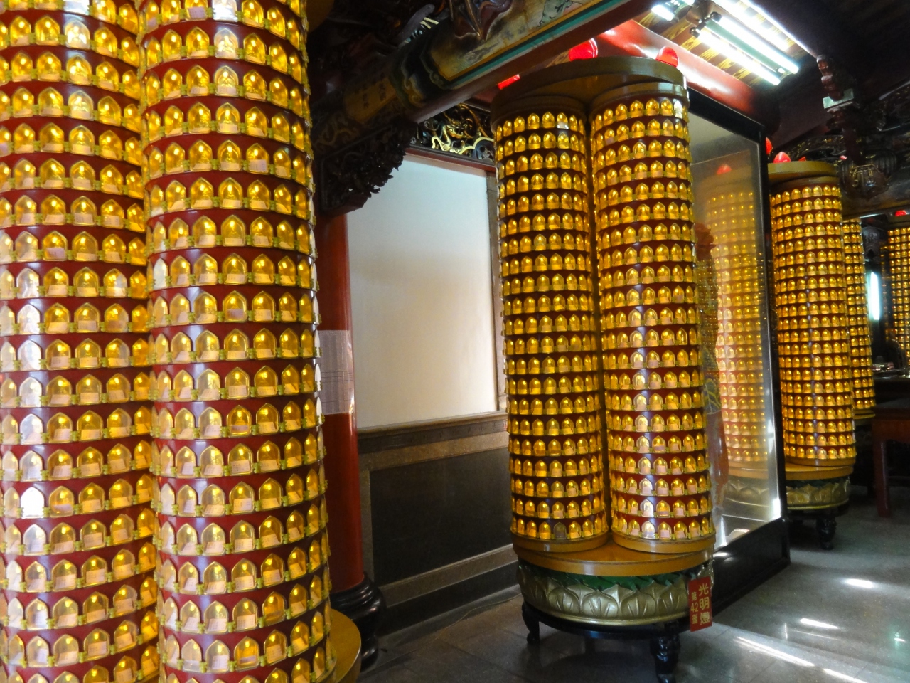 彩虹眷村から台中市内に戻る途中、バスを途中下車して南屯を散策しました。南屯老街はあまり見所はありませんが、萬和宮には大勢の人が参拝にきていました。1726年に建てられた歴史のある廟です。「光明燈」という部屋があり、柱に埋め込また一つ一つの灯りに人の名前が書いてありました。初めて見たのでとても不思議な感じがしました。