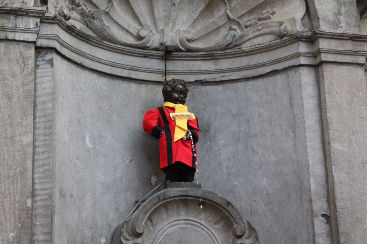 グラン・プラスの市庁舎横の路地を人の流れについて行くとありました。元祖物だそうですが普通ちょっと使わない言葉を若い女性が口にしても違和感のない大らかさがあります。近くに少女もあるようですが鉄製ゲージで囲まれているとか? これって軍事記念物で笑っていられないようそもあるようです。
