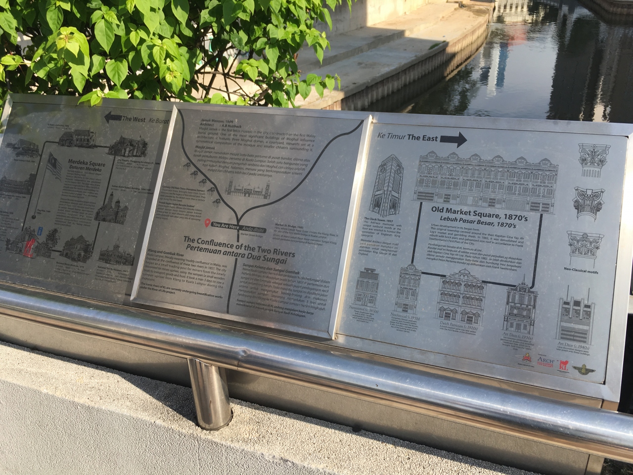 クラン川とゴンバック川の合流地点には、案内の看板が立っています。また、周辺にはマスジット・ジャメや旧国立歴史博物館などの観光スポットがあります。
