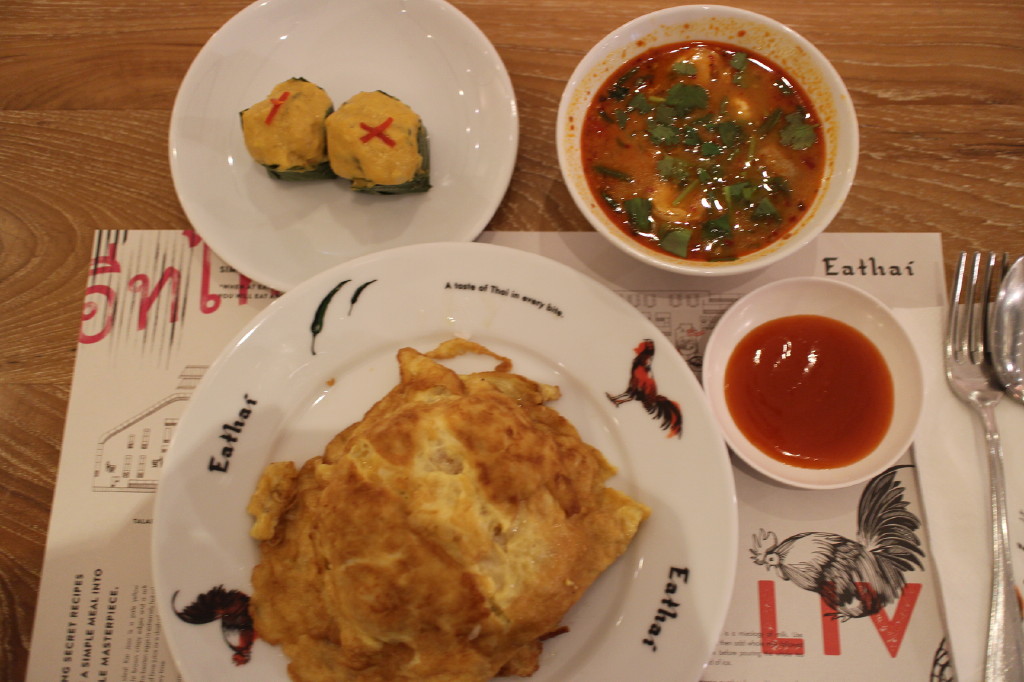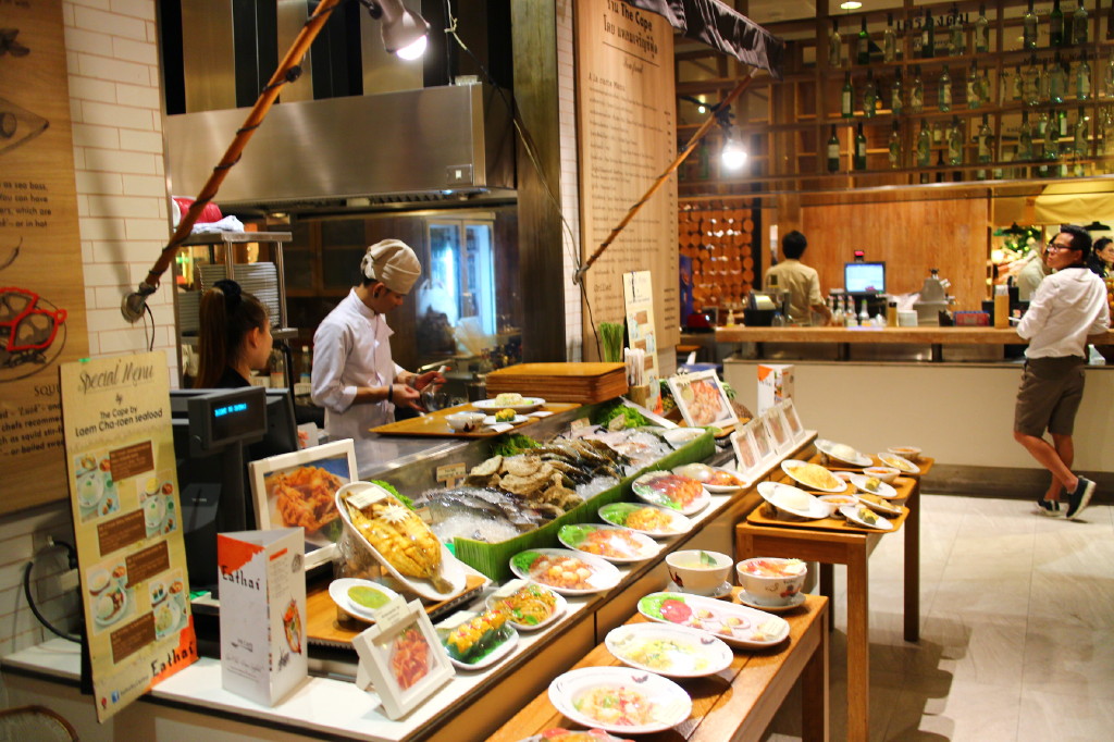 フードコートだがテーブルにはナイフとフォークがセットされていて高級感がある