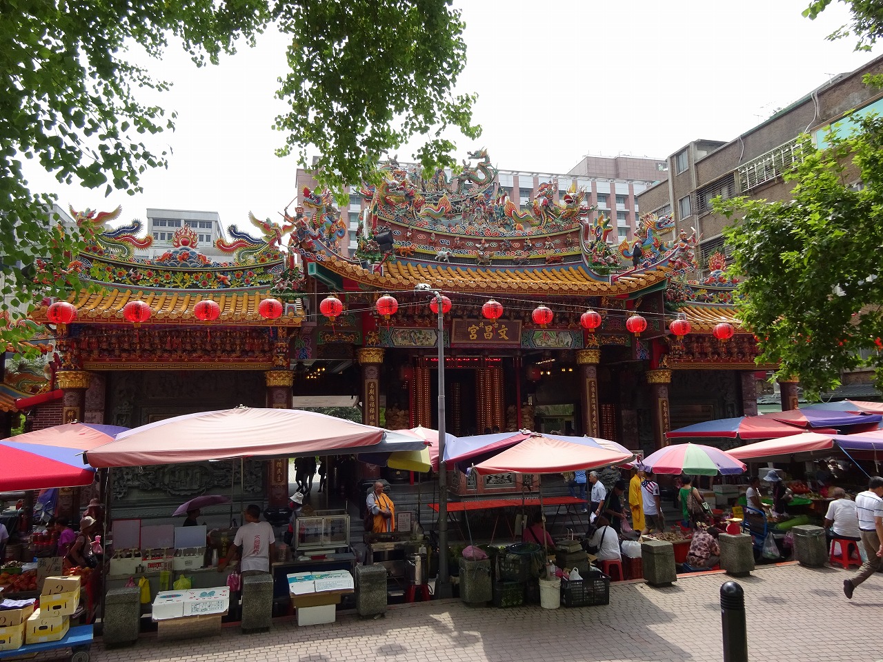 MRT雙連駅近くにある「文昌宮」は、学問の神様として台北では有名な廟ですが、孔子廟、龍山寺、保安宮などの有名な寺院に比べ規模は小さいように感じます。しかし、街の中心にあり、朝市に面しているためか、参拝者は多く、そのほどんどが地元の人のようでした。雙連朝市を歩けば、通り沿いにあるため迷うことなくたどり着けるので、朝市とセットで訪れるのが良いと思います。
