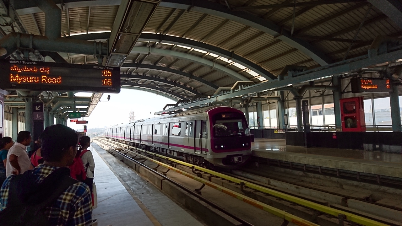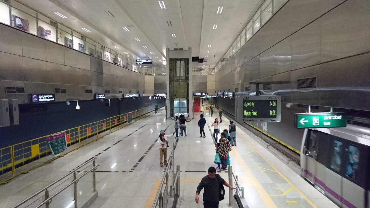 まだ一部区間しか完成しておらず、主にバンガロールの市街地のみですが、2路線のメトロがあります。メトロと言いつつ地下区間のみではなく、高架区間もあります。日中はおおよそ10分間隔です。雰囲気としてはシンガポールや香港の地下鉄に近いです。