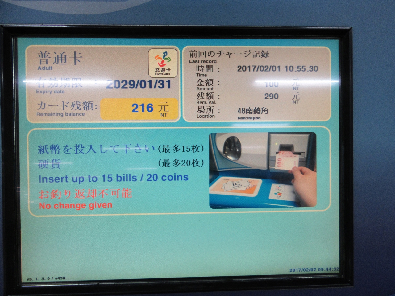 (台北駅地下3階 悠遊カードサービスセンターで購入)