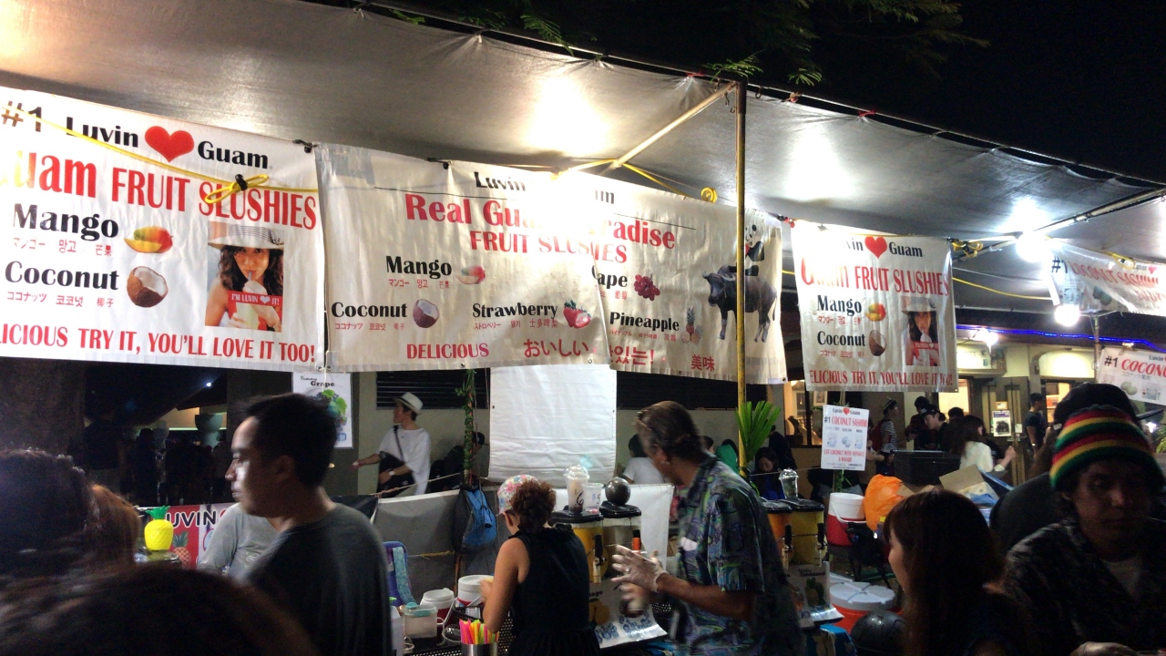 9時に迎えに来てねと運転手に伝えて、チャモロビレッジのナイトマーケットをぶらぶら。