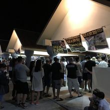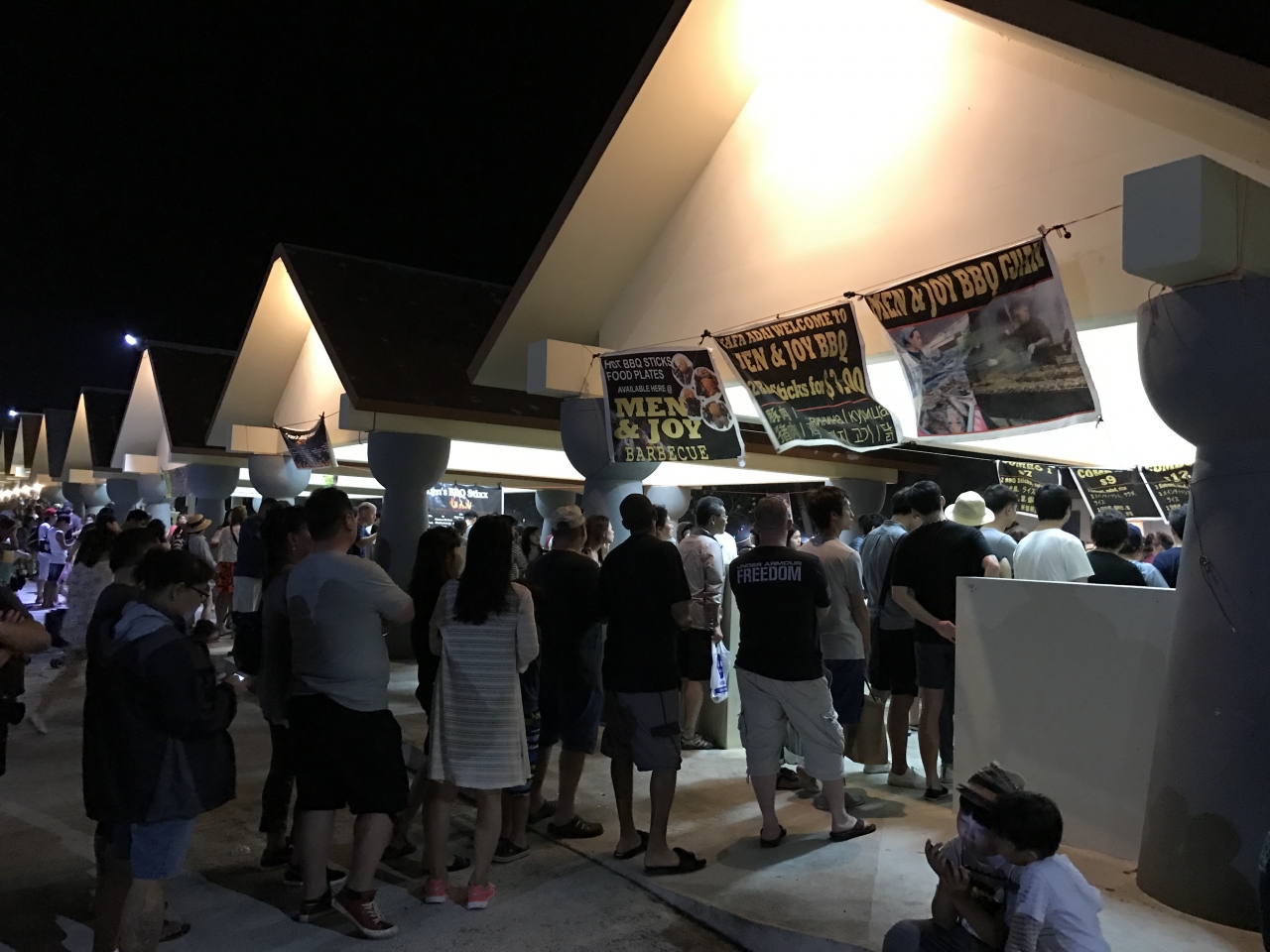 最初は手前にある屋台ぐらいかなと思っていたら常設のコンクリート造りの立派な建物がたくさん並んでいて、そこにバーベキューなどの食べ物を中心とした出店が多数出ていて、その規模の大きさにちょっとビックリ。