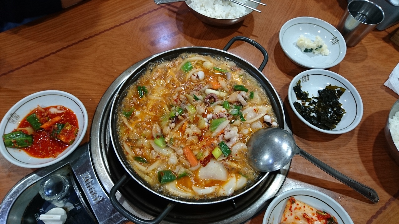西面のお店と違って、南浦洞は自分たちで鍋を作りました。キムチと海苔はテーブルに置いてあるので、好きなだけ取ることができるのが良かったです。