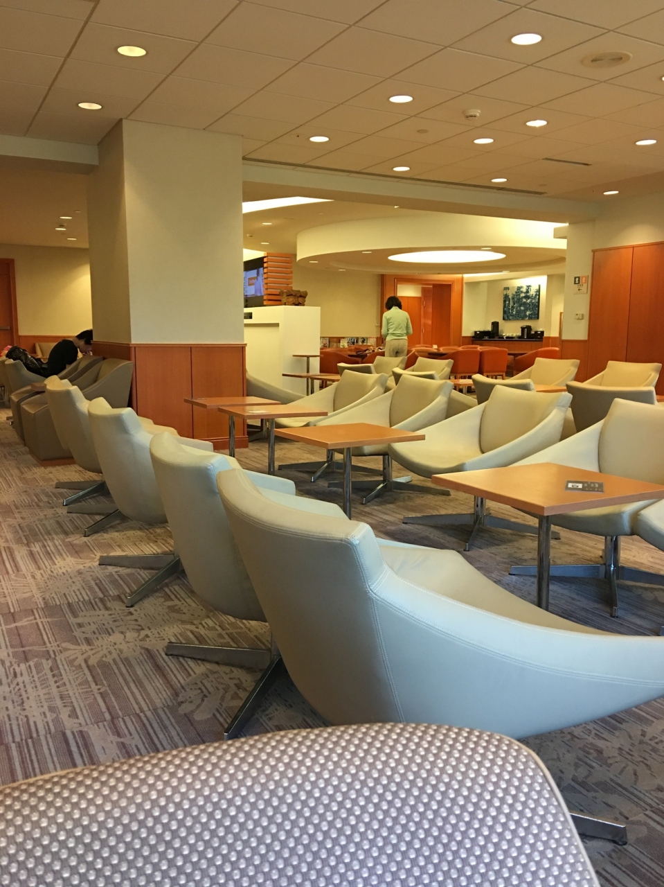 日本のサクララウンジに比べるとガッカリしますが、軽食とドリンクで時間つぶしにゆっくりできます。今回初めて焼きおにぎりシャケ茶漬けを食べましたがクーラーの効いた室内であったかいものがとても美味しかったです。