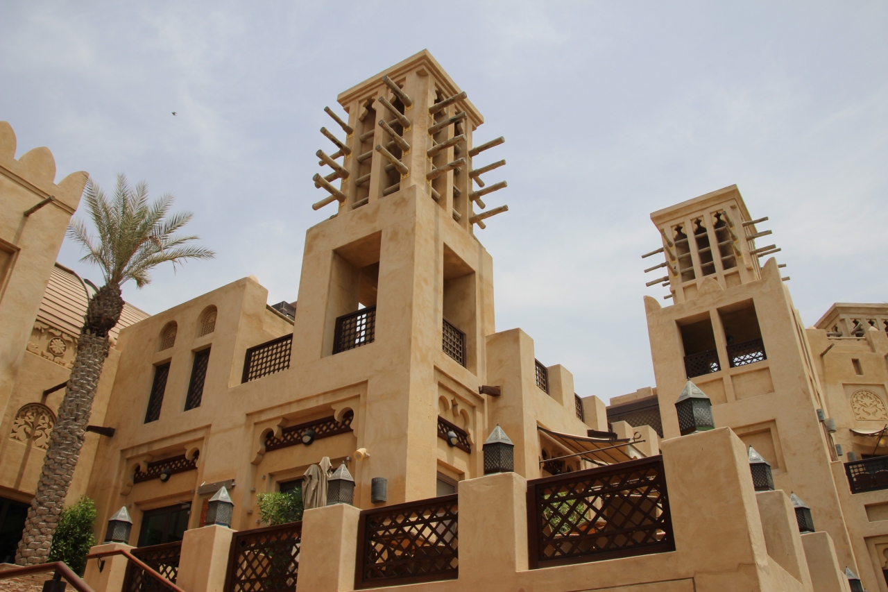 バスタキヤ地区のようにドバイの伝統家屋が復元されているので、目的なしで歩くだけでもそれなりに楽しめます。売っている品物は高いので見る専用ですね。外に出ると遠くにあの7ツ星ホテル、バージュ・アル・アラブも見ることができます。