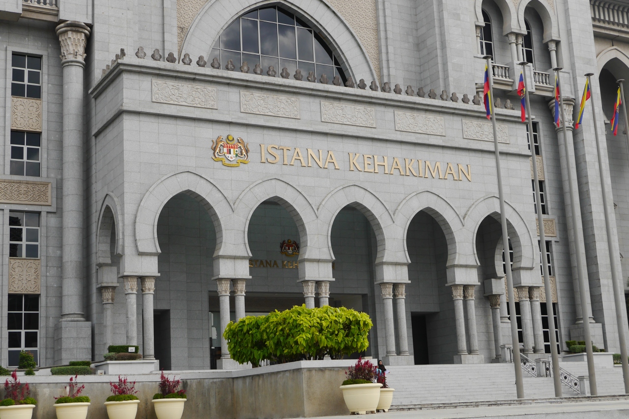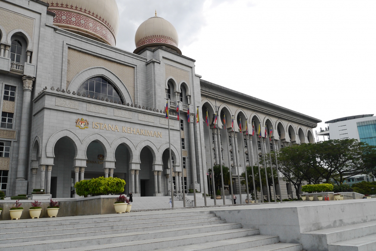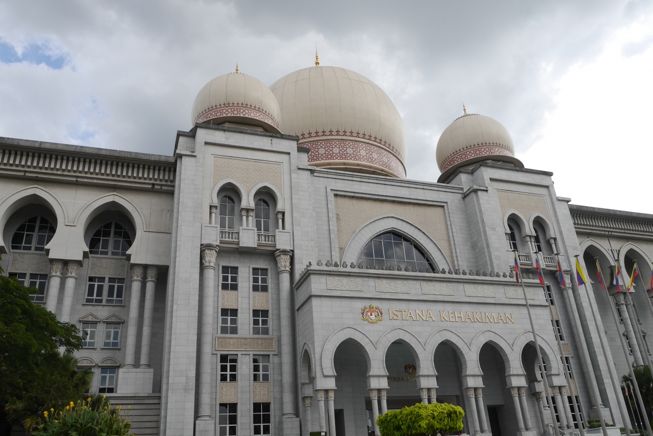プトラジャヤには多くの中央官庁がありますが、その中でも大変目立つ建物です。メイン通りにあり、モスクのようなドームと神殿を思わせる柱列が目を引きます。淡いピンク色も使われていますが、威厳を感じる建物です。目の前の通りは広く整備され、適度に植木も置かれ、明るい雰囲気を出しています。訪問時は土曜日で官庁は休みだったので人通りは少なく、ゆっくり見学できました。