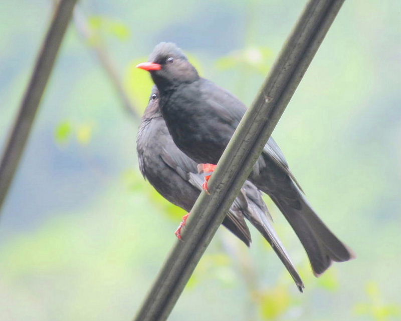ほぼ全身が黒く、嘴と足は真紅でよく目立ちます。