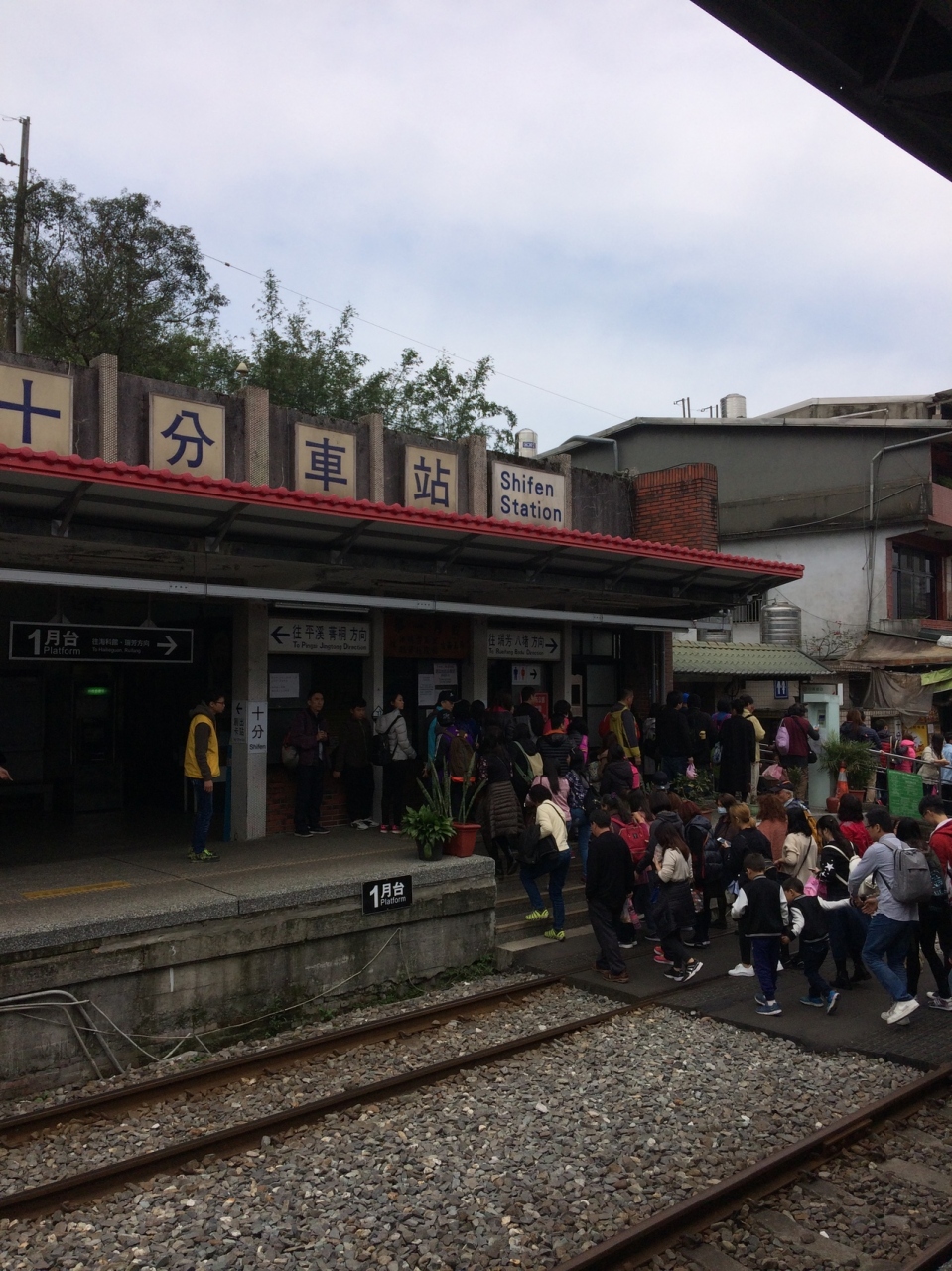 九份は夕方が良さそうなので、午前に十份へ。台鐵をつかってとりあえず瑞芳駅へ。電車の中がめちゃめちゃ寒かった。冷房効きすぎ。冬やしせめて冷房は止めてほしかった。ここからは1時間に1本の平渓線へ乗り換え。乗り換えに時間があったので暖を取るため、近くのカフェへ。思いのほかモダンでおしゃれ。ホットで体をあたためつつ、駅のホームに戻ると人がごった返していました。休日の1時間に1本は思いのほか混雑。絶対座りたいと思い、1番端の車両にならぶと以外に座れました。そこから1時間ほどで十分駅に到着。線路沿いにはランタンのお店やタピオカドリンクのお店が続いて、観光名所な感じ。ランタンは2人で1つを注文。各面に願いをしたため、ランタンを飛ばし、運よく勢いよく空高く飛んでいきました。途中で木にあたって燃えて落ちてくるものもあったり、川に残骸がおいていたりもして、風向きや飛ばす位置も重要だったのかも。