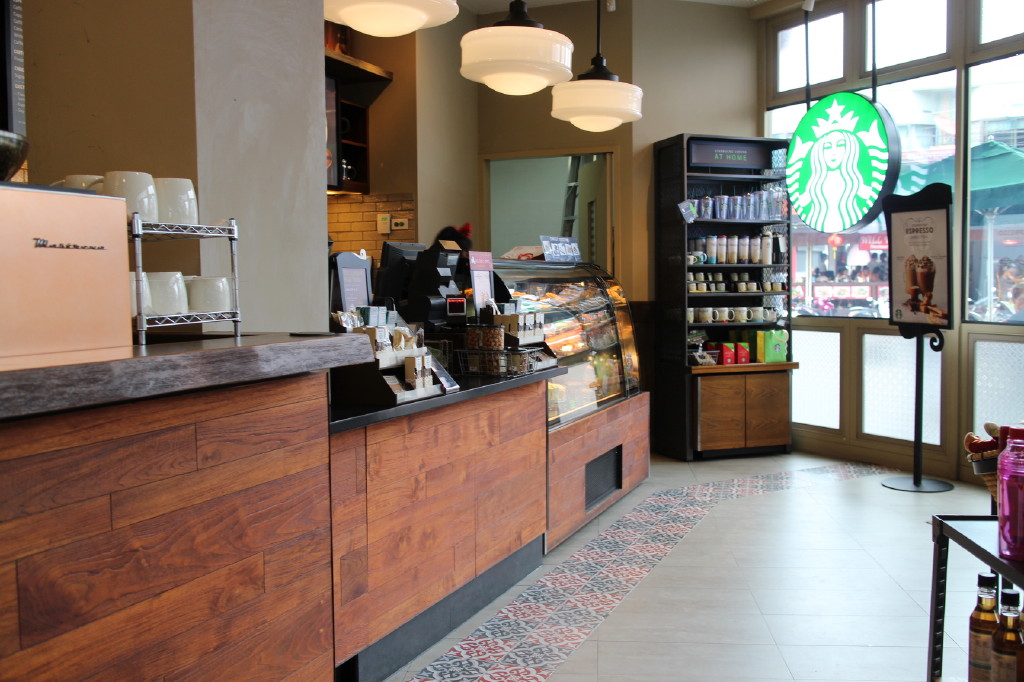 チャウエンビーチロードの真ん中あたり、スタバ、やよい軒、ZENなどの寿司レストラン、スーパーもある