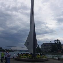 バーゼルで英語で「3ポイント」と表現して、タクシーの運転手にやっと伝わった。しかし、連れて行ってくれた所は船着き場。実際の国境はライン川の中にあるので「船で行く」と考えたのかもしれない。このモニュメントから500mくらい離れた所にフランス、スイス、ドイツの3つの国境が接するポイントはあるそうである。