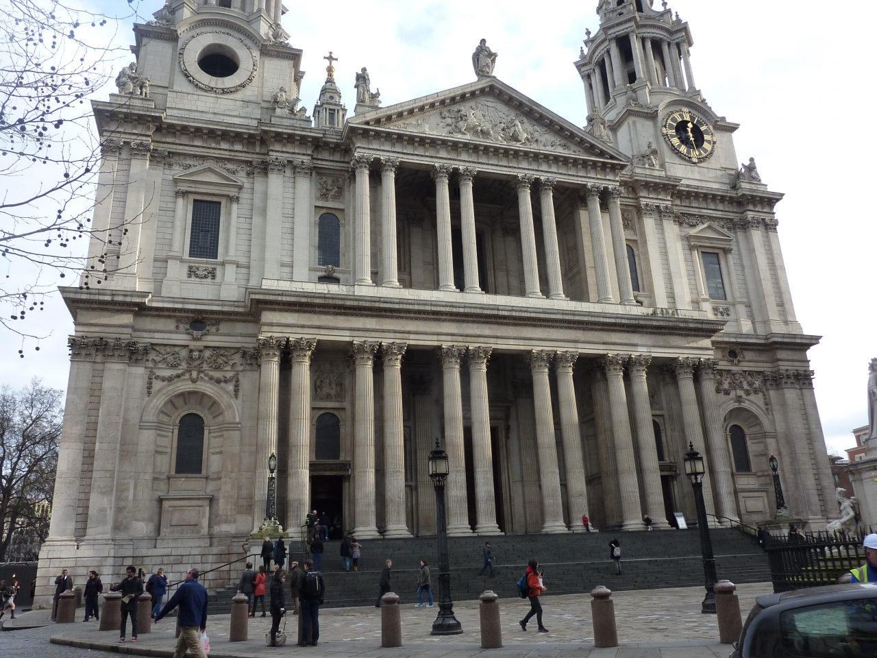 チューブのセントポール駅に降りて周囲を見渡すと大聖堂のドームが見えましたが、ここは裏手なのでビルの間を抜けて正面に回りました。入場料は17ポンド、シニア割引で15ポンドとかなり高めでしたがオーディオガイドはスマホタイプで詳細な説明がされ、動画もあって内容は充実していました。ダイアナ妃の結婚式が行われた様子も画面にありましたが、ガイドを使いこなすのに苦労しました。