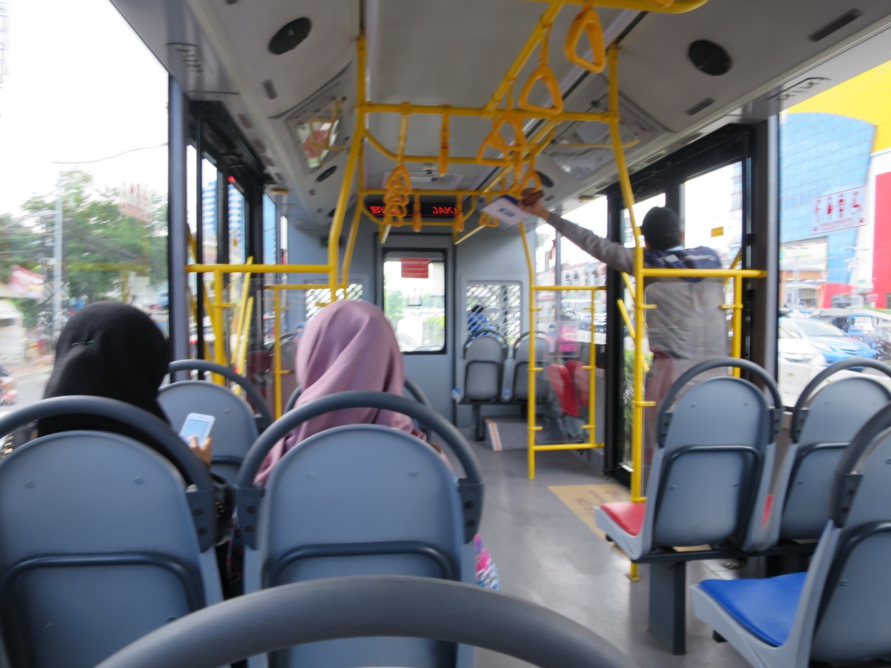市内を走るバスウェイは、とても便利です。バスと市電をミックスしたような感じです。乗り場は、専用のプラットホームからになります。乗り物は、バスそのものです。系統番号と路線図みて乗車です。乗車するには、ICカードが必要です。日本のスイカみたいなカードです。バス停(プラットホーム)のスタッフから購入及びチャージが出来ます!