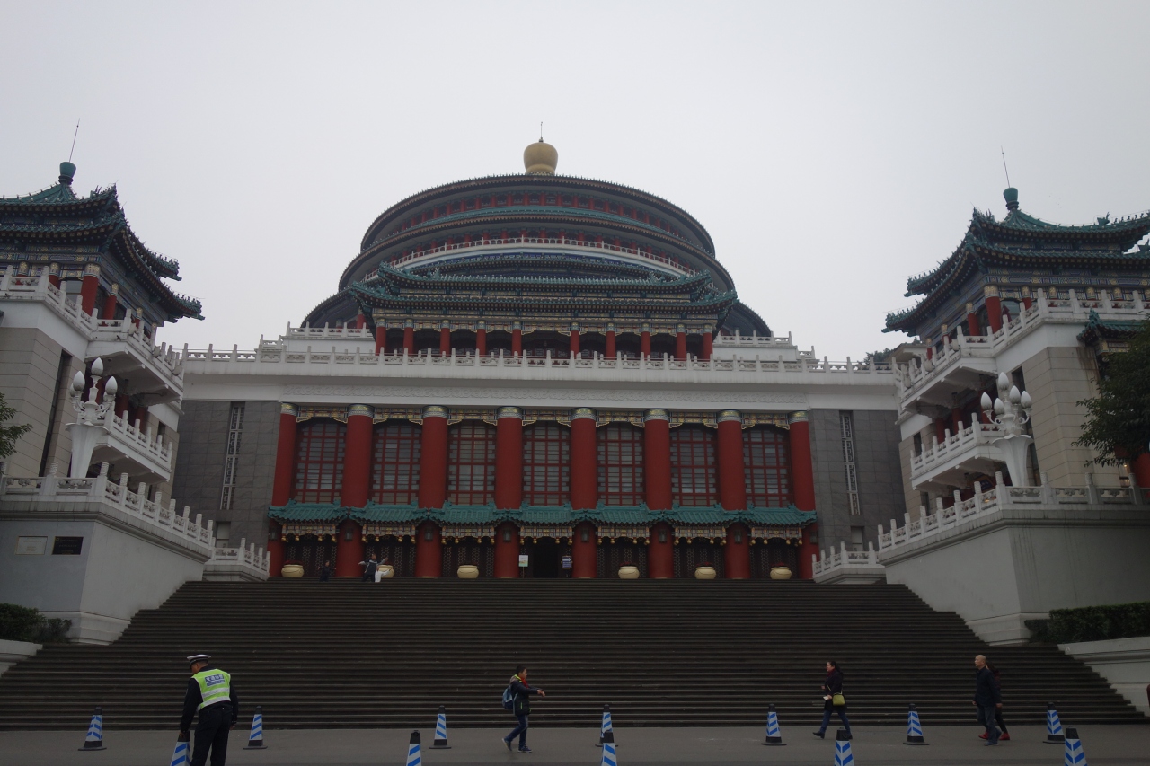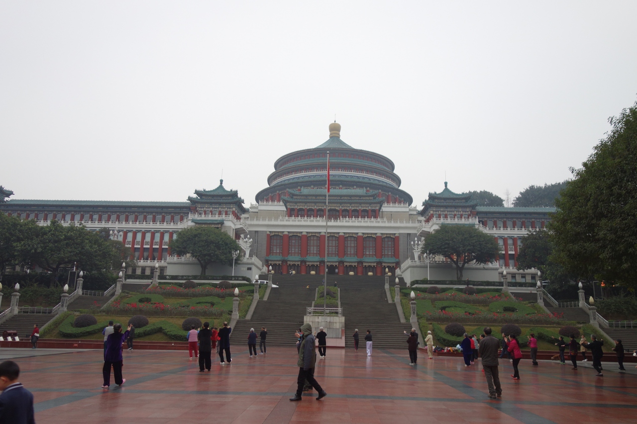 地下鉄曾家岩駅の出口から直接広場に出られます。その広場の左右に人民大礼堂と三峡博物館が在ります。
