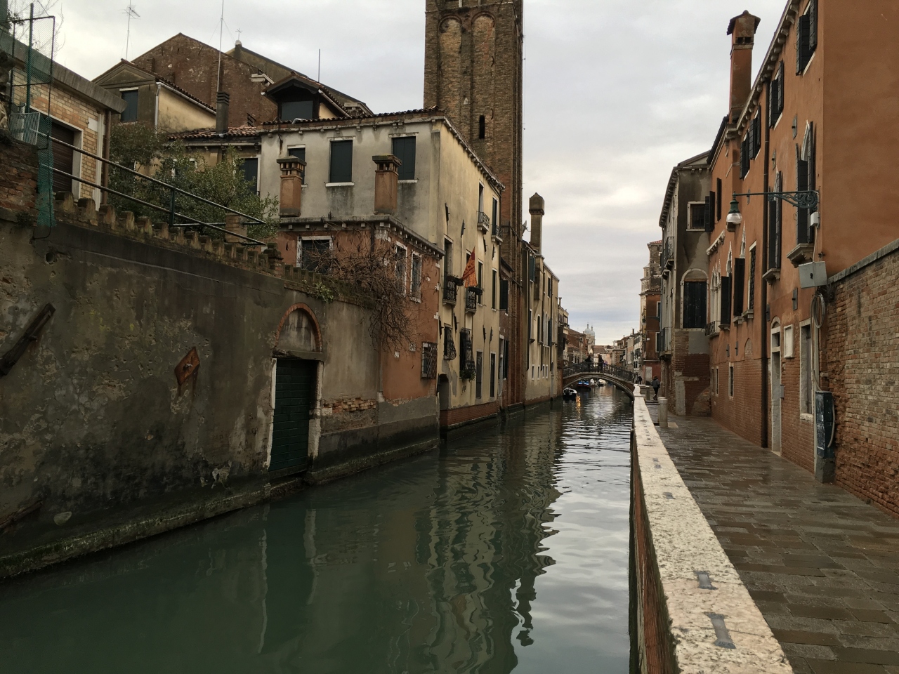 2017年2月 サンマルコ広場・リアルト橋周辺では無く、観光客の少ない所の方が絵になります。5分ほど歩けば、運河と建物の絵になる景色に出会えます。ただし、迷路の街ですから、GoogleMapとかを表示できないと、帰れなく可能性があります。