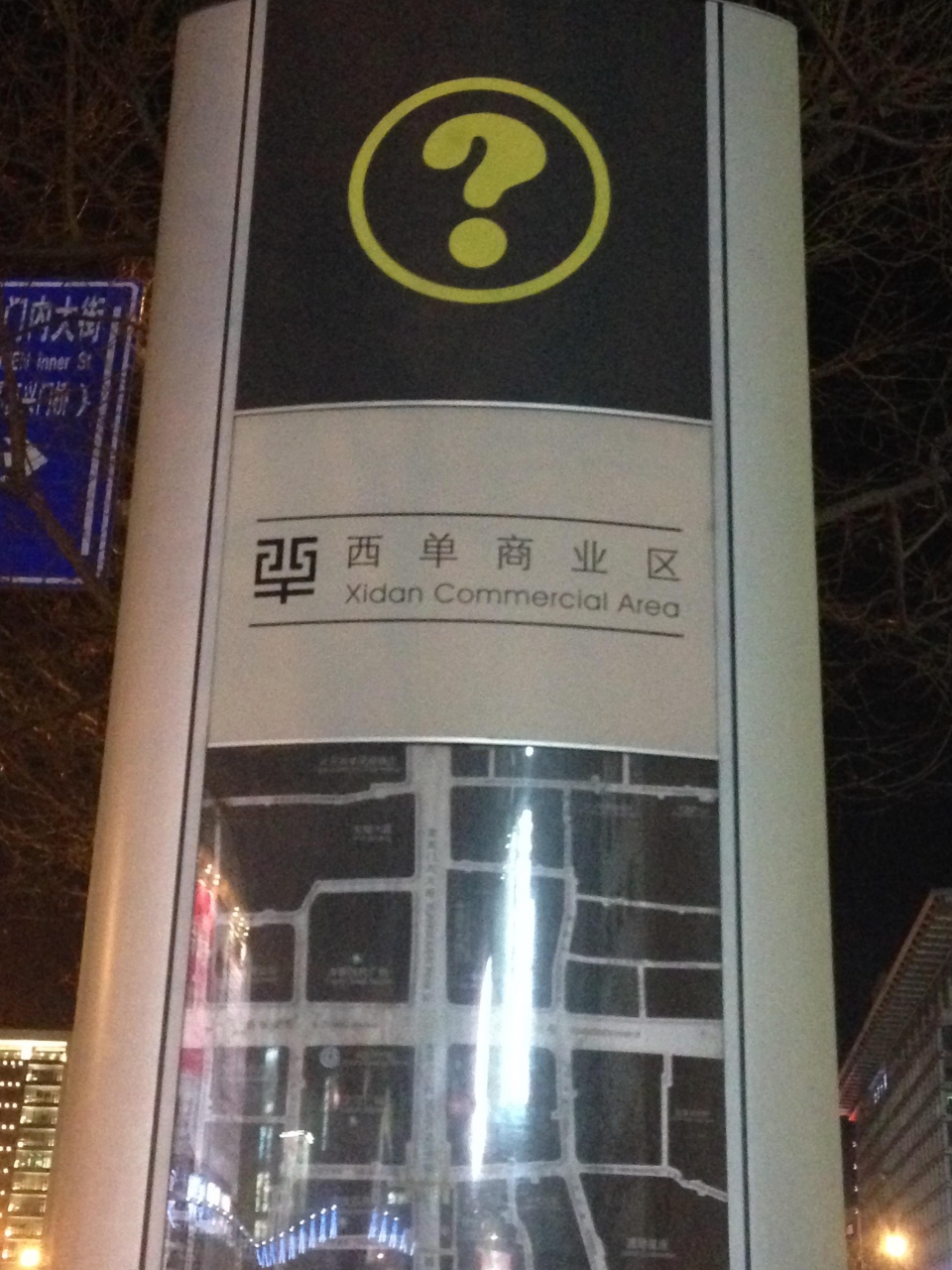 天安門の西、地鉄1号線と4号線が交差する西単駅から広がる一大ショッピングストリート。漢光百貨、君大百貨の2大百貨店、西単大悦城、西単購物中心、西単明珠といったショッピングセンターや北京図書大厦(大型書店)が立ち並び、人通りが非常に多い。ただし王府井に比べると観光客が少なく、若者が多い気がします。そのせいなのか土曜、日曜は地下鉄の改札口が非常に混雑し、改札内に入るまで非常に時間がかかるので注意が必要(地下鉄乗車前に荷物検査とボディチェックがあるせいかもしれないが)。