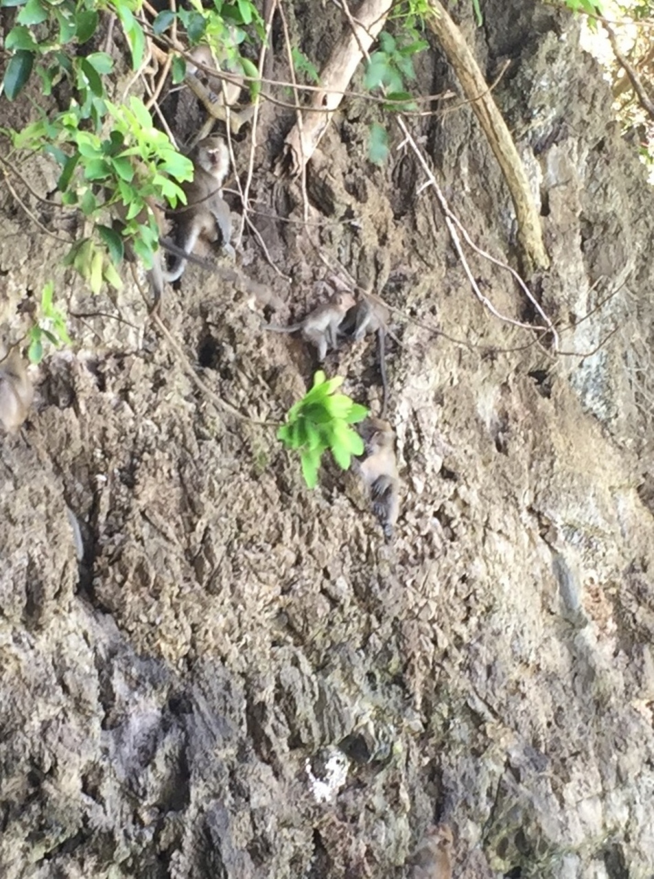 崖には猿がいたるところにいます。木にぶら下がっていたり、、、