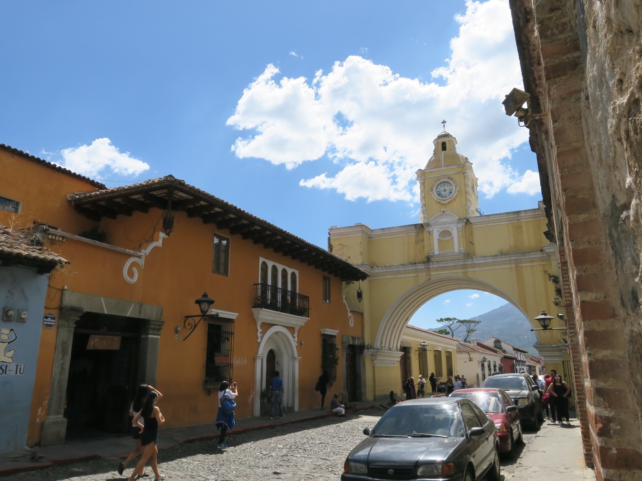アンティグアのシンボル的存在である、時計台の繋がる修道院です。かつてはこの両側が修道院だったそうです。外界との接触を絶って生活していた修道女が、両方の建物を行き来するために造られたアーチだったそうです。1609年に設立された、歴史ある修道院です。