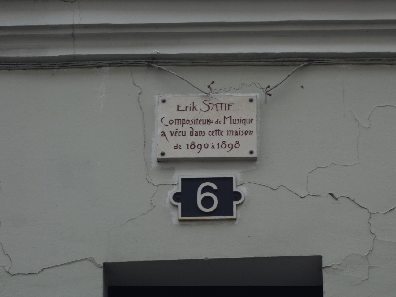 モンマルトル美術館のならびにサティの住んだ家の看板が壁に張り付いている家があります。そのつもりで探さないと見落としてしますようなところです。この家(アパートみたいな集合住宅。高層ではない)でサティは彼の作品を書いたのでしょうか。