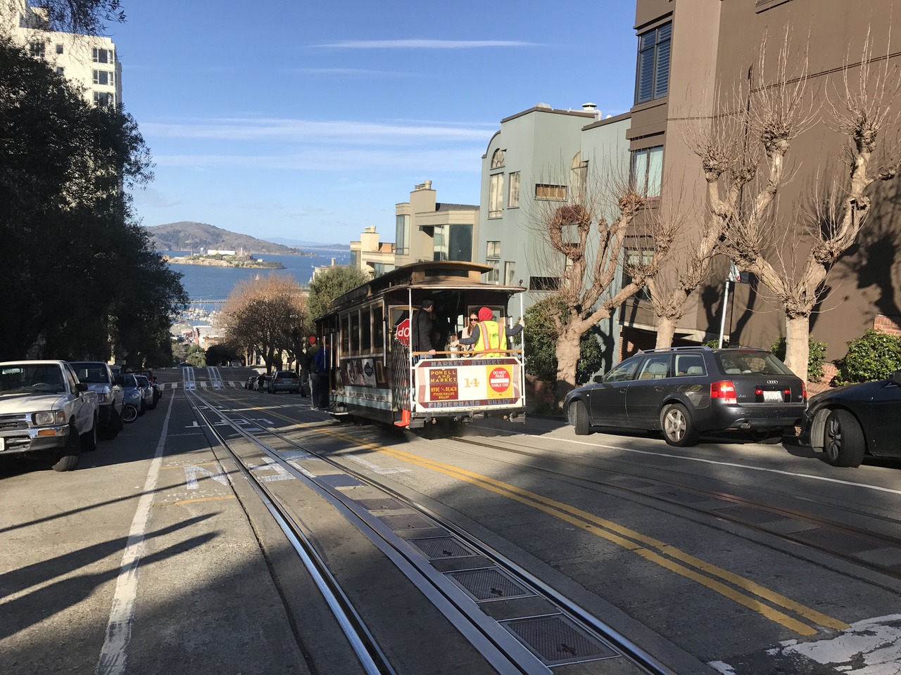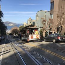 坂が多いサンフランシスコならではの乗り物ですね。美しい街並みにマッチします。