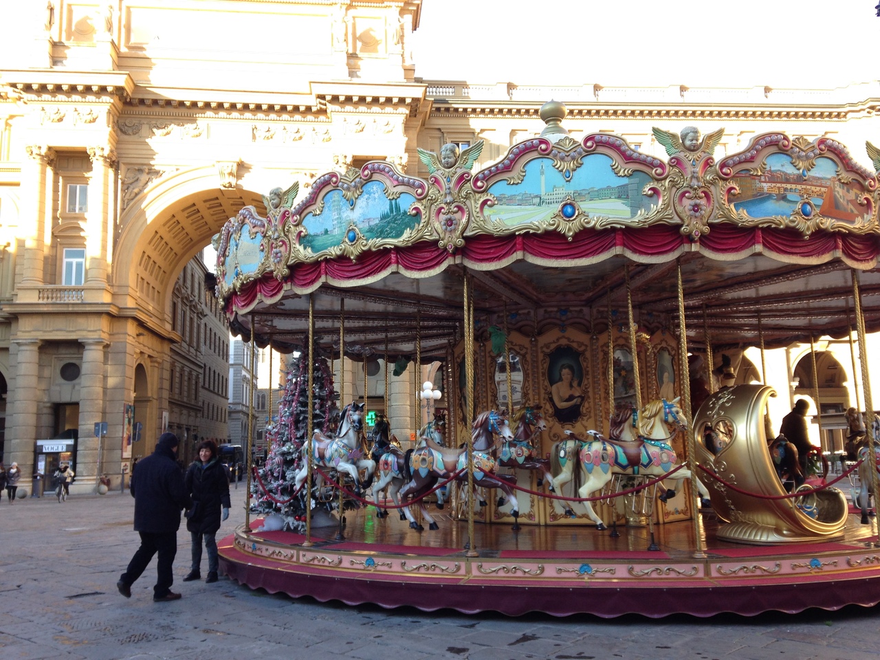 イタリア各地に同じ名前の広場が存在します。一説には、1946年にイタリア共和国が成立したことを記念して、この名前が各地に付けられたそう。メリーゴーランドが広場の目印です。カフェやブランド店に囲まれています。