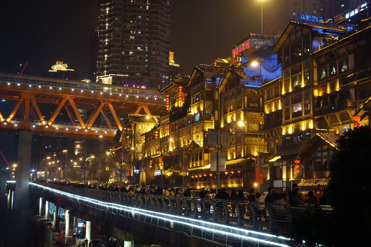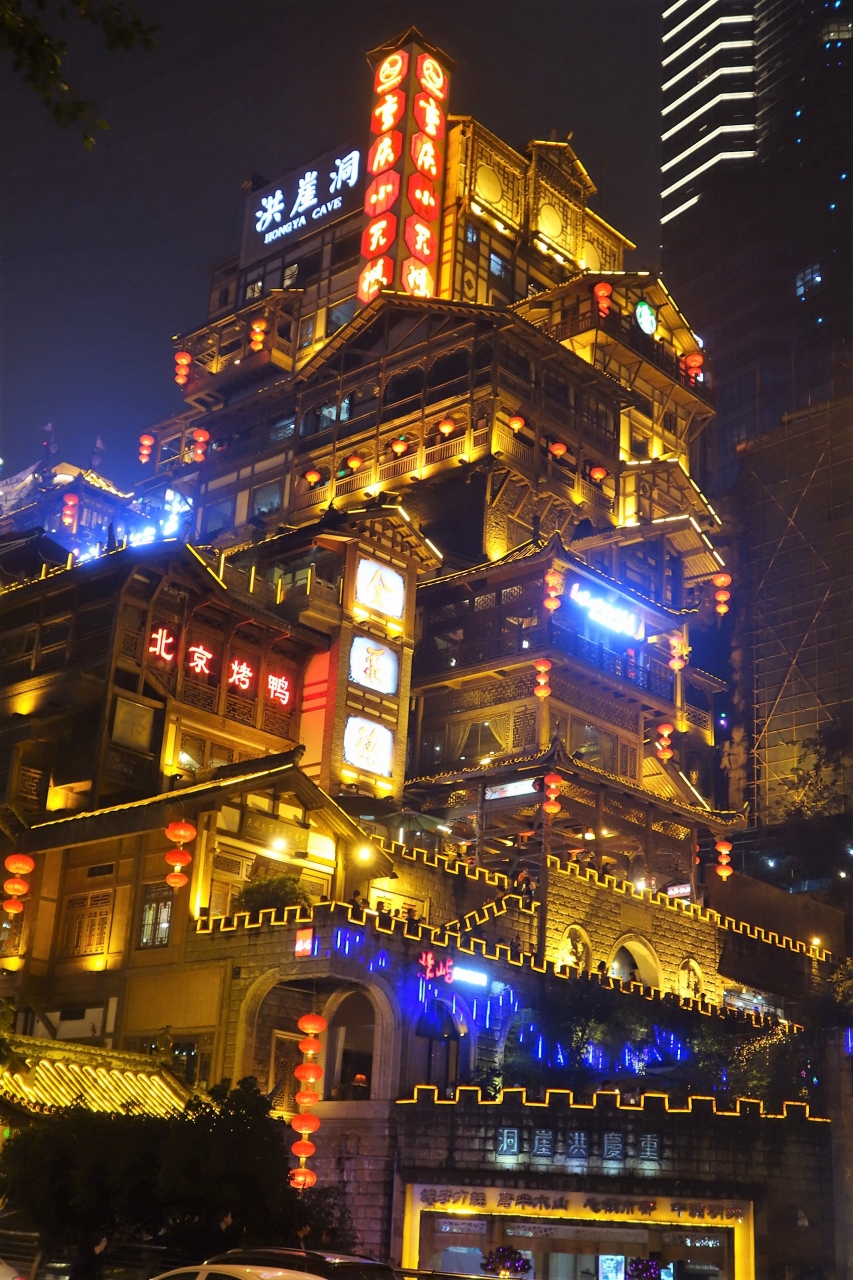 嘉陵江に面した崖を利用して立っている建物です。川沿いの嘉陵江浜江路は地下1階にあたり、建物内のエレベーターは9階まで、上の道路は其処から更にエスカレーターを上がった所になります。