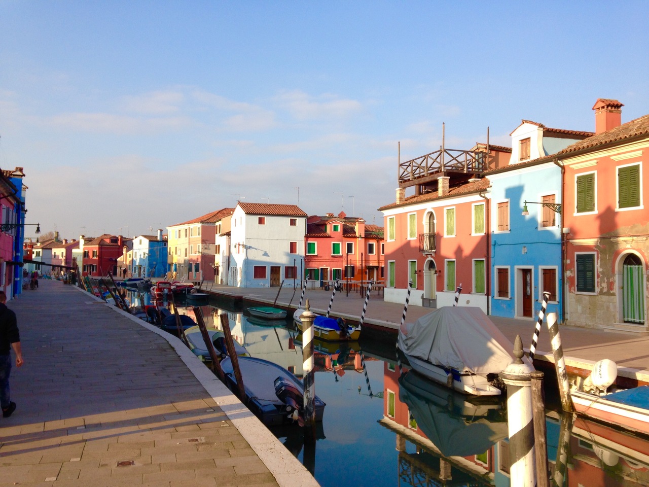ベネチア本島からヴァポレットで1時間ほどかかりました。こちらへ来るヴァポレットの本数は少ないようで行きも帰りも船内は混雑していました。鮮やかな色の家々を見てるだけで楽しい気分になりました。ガラスやレース雑貨のお店もたくさんありました。