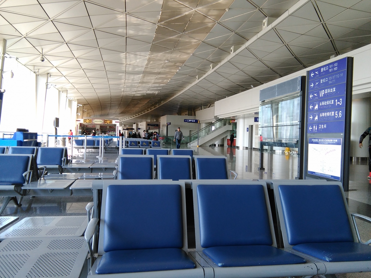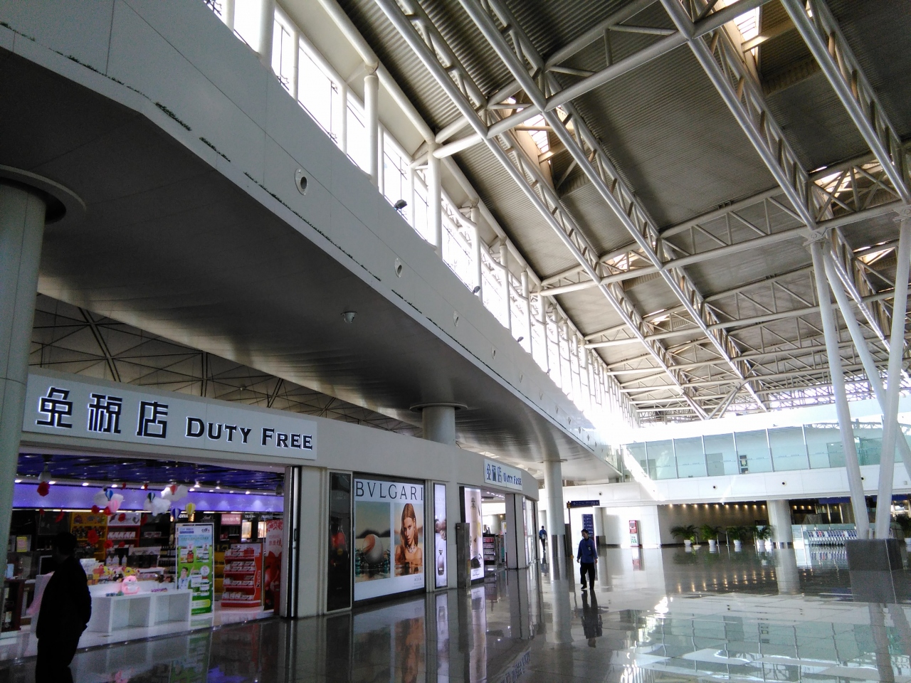 想像以上に何もない閑散とした空港です。出発ロビーにも小さな商店が1つあるだけで、出国審査を終えて中に入っても、全然お客さんの入っていないレストランが2店、あまりに暇で店員がスマホをいじっているようなお土産店が3つあるだけです。