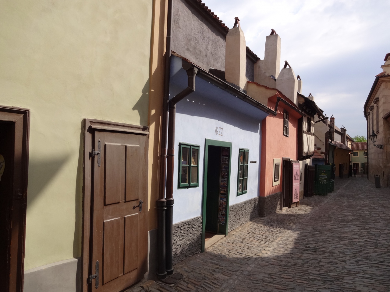 黄金小路 Zlatá uličkaは、プラハ城内の東側の一画で、色とりどりの小さな家が軒を連ね、まるで童話の世界に迷い込んだような雰囲気だった。黄金小路という名は、錬金術師を住まわせていたという話から付けられたそうだが、実際は衛兵のための住まいだったと言われている。現在はどの家もみやげ物屋となっていて、観光客がそぞろ歩く。なかにはプラハ出身の作家、フランツ・カフカが一時期使用していた22番目の水色の家などもあった。