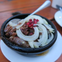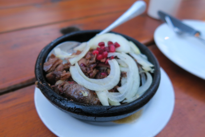 豚肉のソーセージは、単純なボイルではなく、いろいろ香辛料がついていて、またいろいろな部位の肉もあり、なかなか美味しかった。鉄板焼きなので、いつまでも暖かく頂けた。