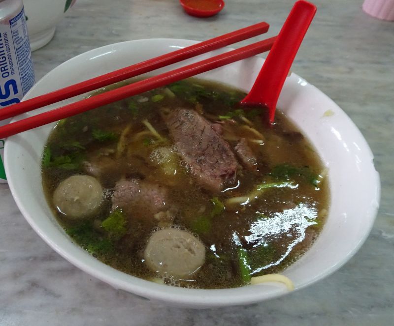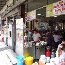 店の正面に立つと「~茶麗豊」という店名。その下ではチキンライスを売っている。横に回ると大きな鍋で中華料理を炒めている。一番奥に牛肉麺を茹でているコーナーがありました。