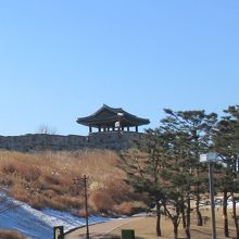 華西門のすぐ南側、急坂を登った城壁の上にあります。朱色の柱で瓦屋根を支えた東屋のような建物で、見張り台のように使っていたのかと思われます。ここまで上ると水原の賑やかな街並みに中に溶け込むような水原華城の全体像がつかめます。時間と体力がある方は坂を上ってみると良いでしょう。