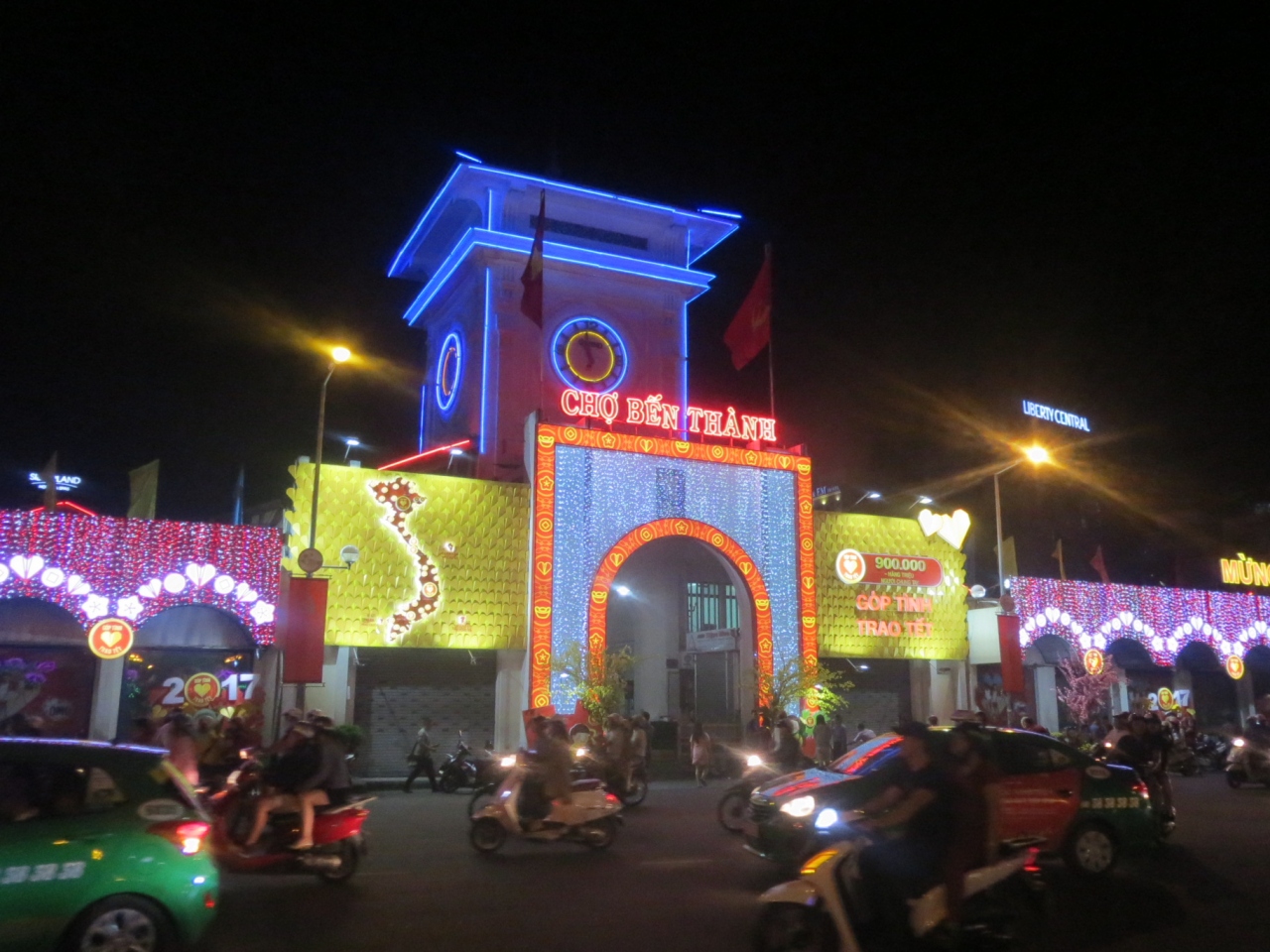 ホーチミンの街の中心といっても過言ではない、ベンタイン市場を夜訪れました。