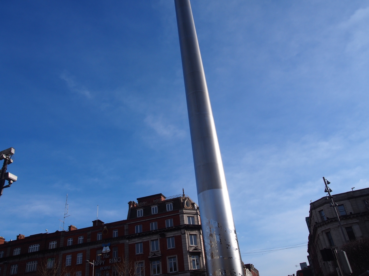 オコンネル通りの少し北側の中央分離帯にある金属製の塔がモニュメント・オブ・ライトです。塔の高さは120mの高さで、近つくに従ってその大きさに圧倒されます。地面付近から天に向かって細くなっているので、遠近感を加えると、塔がずっと続いていて天に消えていくように見えます。金属製の塔なので光の具合で見え方が違ってきます。