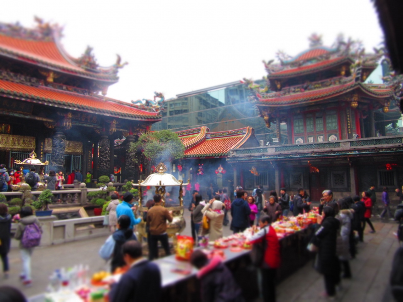 創建約270年の台北で最も歴史のあるお寺です。最強のパワースポットだけあって、いつも人でごった返しています。願い事をすればご利益があるとの事で、地元の人からも厚い信頼を受けているようです。いろいろな神様が祭られていますが、一番人気はやっぱり恋愛の神様「月老神君」でしょうか。若い女の子達が群がっていました。