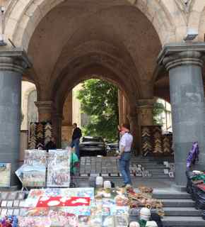 ジョージア伝統の角で作ったワイン用グラスや剣、帽子、布製品、絵などが売っていて、他に観光客向けのお土産などもありました。毎日やっているのかはわかりませんが、私は金曜日のお昼頃に見かけました。