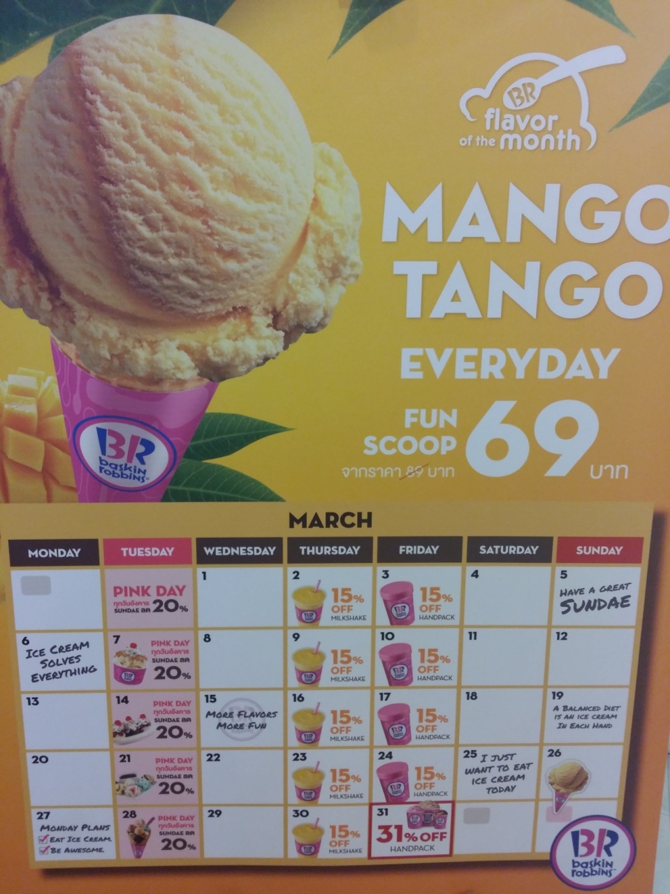 日本のサーティワンアイスクリームはタイではバスキンロビンスと呼ばれています。