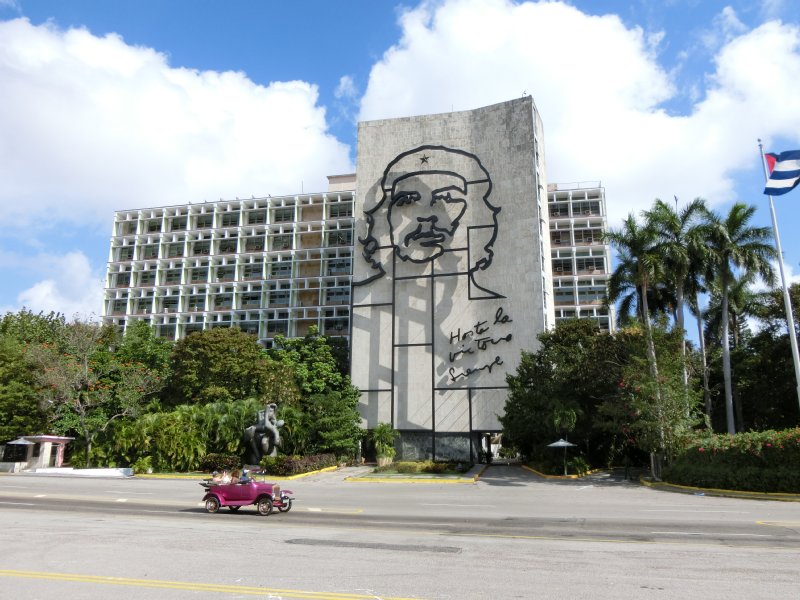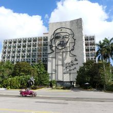 チェ・ゲバラやカミーロ・シエンフエゴスが描かれた省庁の建物で有名な革命広場。観光客が乗ったクラシックカーが並び、バスツアーのT1も発着するので観光をスタートするのに最もいい場所と言えるかもしれません。