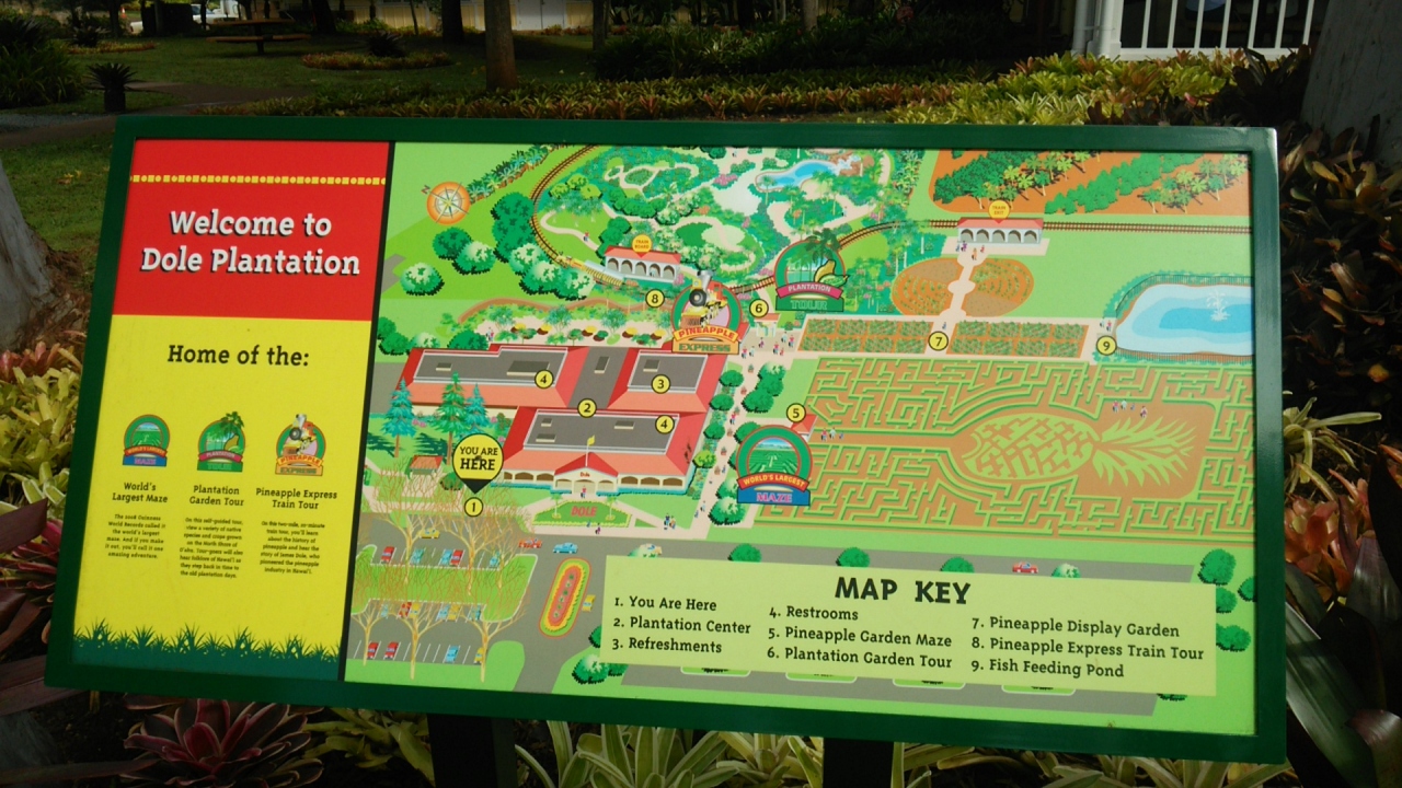 パイナップルアイスやロコモコなどの食事(日本にはないストロベリー味のコーラなども)や園内トレインや世界最大の迷路など、いろいろ楽しい施設があります。