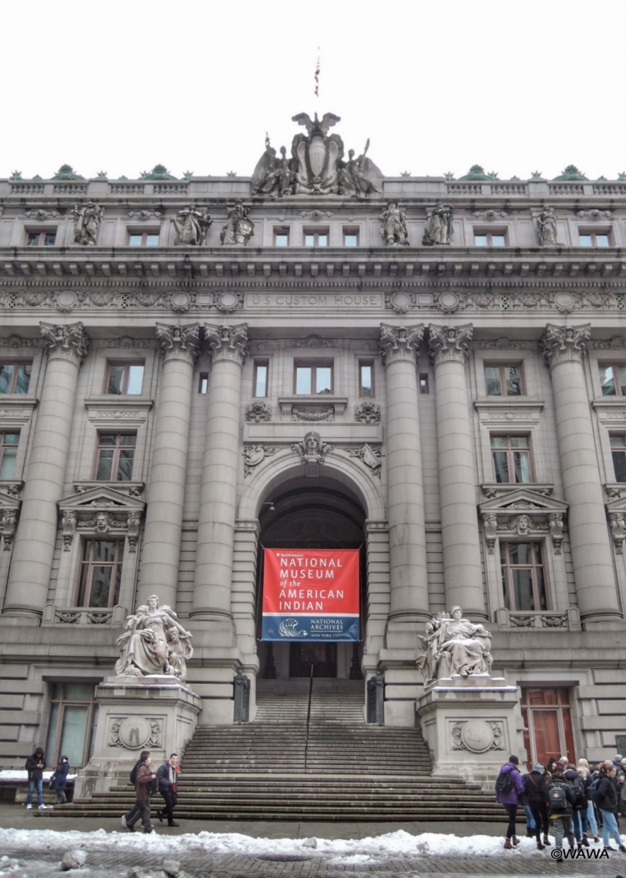 ニューヨークのバッテリーパークとウォール街の間にあるナショナル ミュージアム オブ ザ アメリカン インディアンはインデアンの歴史や文化を展示した入場無料の博物館です。裏側ではバッテリーパークと接する大きな建物は旧税関を転用した施設との事でした。