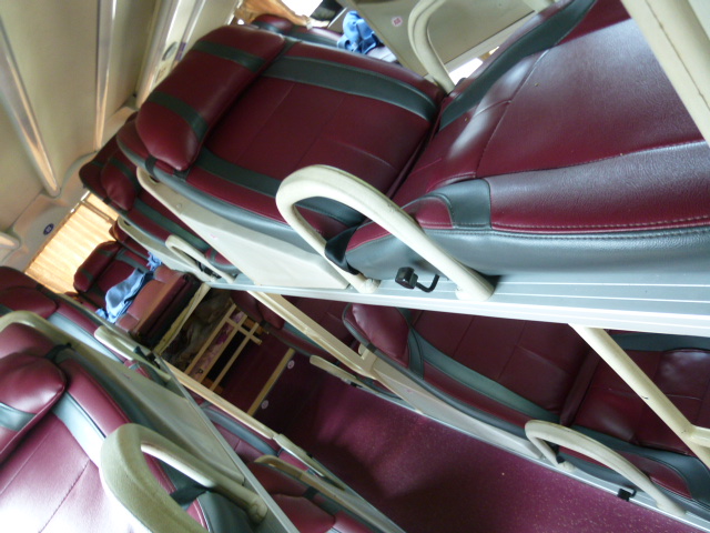 車内は最初からリクライニングになった二段ベットが並んでいるって感じです。さらに倒すとほぼ水平になりますのでゆったりと乗車できます。座席自由でした。