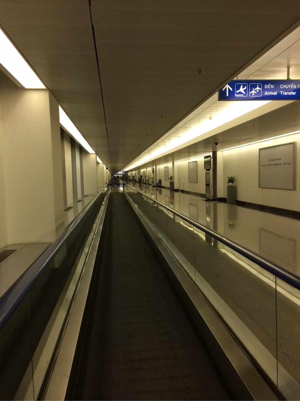 市内バスで5000ドンで行けます。安くアクセスできてよかったです。空港に着いたのは1時だったので、そのまま空港で爆睡。ウォーターサーバーもあり、トイレも綺麗で1泊する分には中国の上海空港より綺麗で安心でした。空港から見えた朝焼けが最高でした。両替はレート悪いです