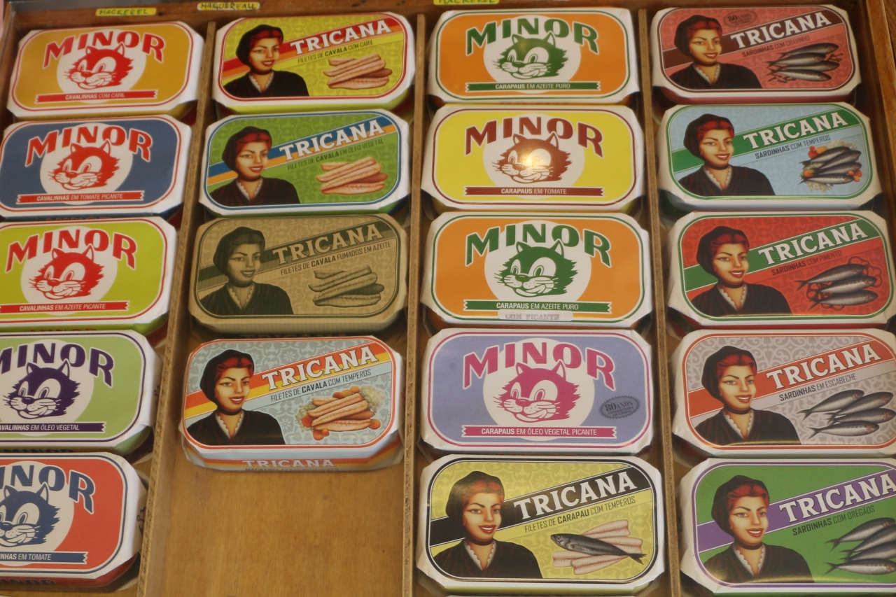 イワシやバカリャウ(干しダラ)、タコ、イカの缶詰など全部で100種類以上あると思います。