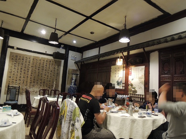 地下鉄五号線「東四」駅から北に五分ほど歩いた東側にある歴史ある浙江料理店です。日曜日の夜八時に行ったのですが、お客は地元の人がほとんどでそれほど混まず静かに食事が楽しめました。名物の「茴香豆」と「東坡肉」、ほかに蒸し鶏、魚香ナス、スープ、白飯・・など、四人で紹興酒を飲んで食べて191元とお値段も格安でした。